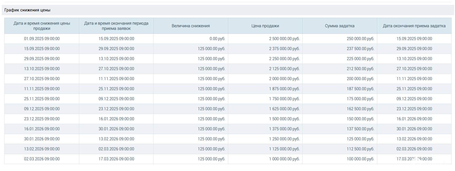 АО "Российский аукционный дом" реализует на торгах Нежилое здание магазин продовольственных товаров «Ксения», площадь: 92, 5 кв. м. , количество этажей 1, в том числе подземных 0, кадастровый номер: 25: 13: 000000: 383, местонахождение: Приморский край, с. Золотая Долина Партизанского района, пер. Спортивный, д. 1а; расположенное на земельном участке с кадастровым номером 25: 13: 020314: 355 Имущество реализуется на электронной торговой площадке Лот-Онлайн, код лота на ЭТП: РАД-424865 Продажа производится через торги путём публичного предложения с поэтапным снижением цены. График снижения приложен к фотографиям. Прием заявок с 01.09.2025 09: 00: 00 17.03.2026 09: 00: 00 По вопросам ознакомления с имуществом и для уточнения информации о торгах просьба обращаться в рабочие дни с 9 до 18 по времени г. Владивосток (МСК+7ч) .