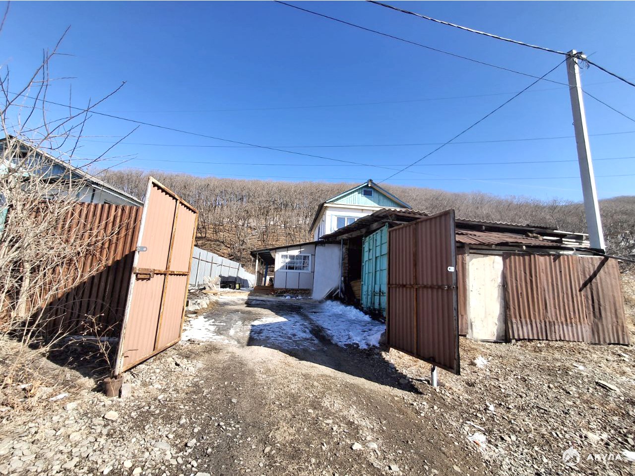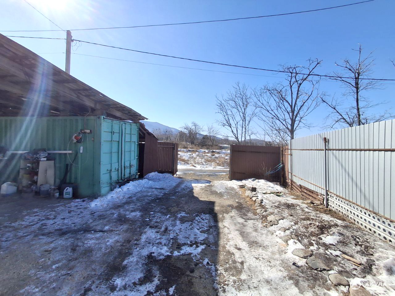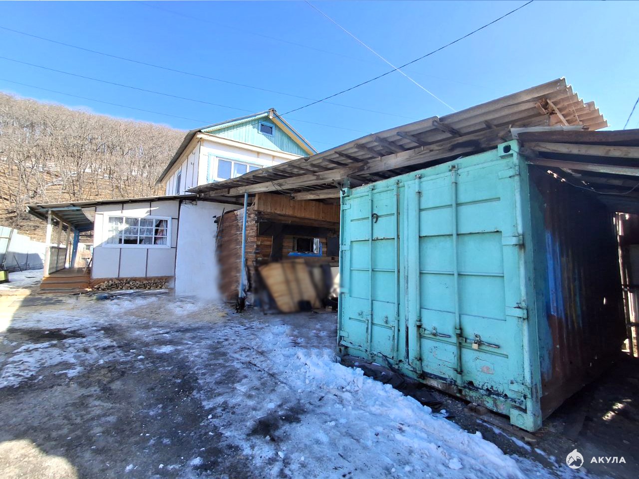 Во дворе имеются хоз. постройки и металлический контейнер.