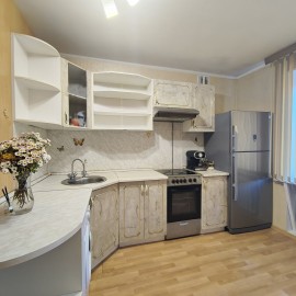 Состояние и особенности квартиры Балкон застеклён, железная дверь, пластиковые окна, новая сантехника. Мебель Полностью мебелирована, в наличии вся необходимая мебель (2 дивана, шкаф, 2 кресла, журнальный столик, кухонный гарнитур, обеденный стол). Бытовая техника: плита,...