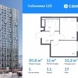 Строим кварталы для жизни с заботой о будущем. Предлагается 1-комнатная квартира комфорт-класса 30, 6 кв.м в корпусе 1.1 на 17 этаже, в ЖК «Сабанеева 125» Квартира с чистовой отделкой. Доступность дополнительных опций уточняйте у застройщика. Приобрести квартиру возможно по...