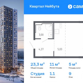 Строим кварталы для жизни с заботой о будущем. Предлагается квартира студия комфорт-класса 23, 27 кв.м в корпусе 1.1 на 9 этаже, в ЖК «Квартал Нейбута» Квартира с чистовой отделкой. Доступность дополнительных опций уточняйте у застройщика. Приобрести квартиру возможно по...