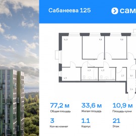 Строим кварталы для жизни с заботой о будущем. Предлагается 3-комнатная квартира комфорт-класса 77, 2 кв.м в корпусе 1.1 на 21 этаже, в ЖК «Сабанеева 125» Квартира без отделки. Доступность опции «отделка» и возможность комплектации мебелью и декором уточняйте у...