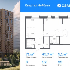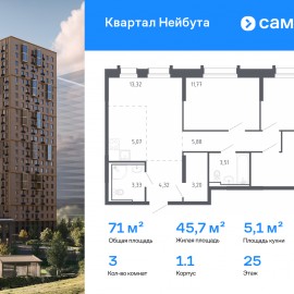 Строим кварталы для жизни с заботой о будущем. Предлагается 3-комнатная квартира комфорт-класса 70, 97 кв.м в корпусе 1.1 на 25 этаже, в ЖК «Квартал Нейбута» Квартира с чистовой отделкой. Доступность дополнительных опций уточняйте у застройщика. Приобрести квартиру возможно по...