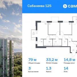Строим кварталы для жизни с заботой о будущем. Предлагается 3-комнатная квартира комфорт-класса 78, 1 кв.м в корпусе 1.2 на 14 этаже, в ЖК «Сабанеева 125» Квартира без отделки. Доступность опции «отделка» и возможность комплектации мебелью и декором уточняйте у...
