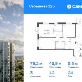 Строим кварталы для жизни с заботой о будущем. Предлагается 3-комнатная квартира комфорт-класса 78, 2 кв.м в корпусе 1.2 на 24 этаже, в ЖК «Сабанеева 125» Квартира без отделки. Доступность опции «отделка» и возможность комплектации мебелью и декором уточняйте у...