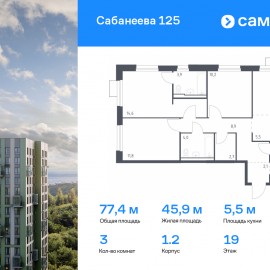 Строим кварталы для жизни с заботой о будущем. Предлагается 3-комнатная квартира комфорт-класса 77, 2 кв.м в корпусе 1.1 на 19 этаже, в ЖК «Сабанеева 125» Квартира без отделки. Доступность опции «отделка» и возможность комплектации мебелью и декором уточняйте у...