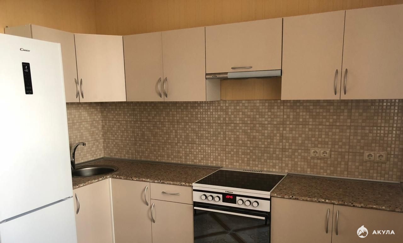 Полностью оборудованная кухня: холодильник, плита с 4 конфорками, духовка, микроволновка, электрический чайник, небольшой набор посуды.