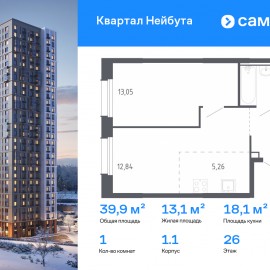 Строим кварталы для жизни с заботой о будущем. Предлагается 1-комнатная квартира комфорт-класса 39, 94 кв.м в корпусе 1.1 на 26 этаже, в ЖК «Квартал Нейбута» Квартира без отделки. Доступность опции «отделка» и возможность комплектации мебелью и декором уточняйте у...