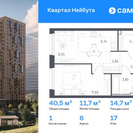 Строим кварталы для жизни с заботой о будущем. Предлагается 1-комнатная квартира комфорт-класса 40, 51 кв.м в корпусе 6 на 17 этаже, в ЖК «Квартал Нейбута» Квартира без отделки. Доступность опции «отделка» и возможность комплектации мебелью и декором уточняйте у...