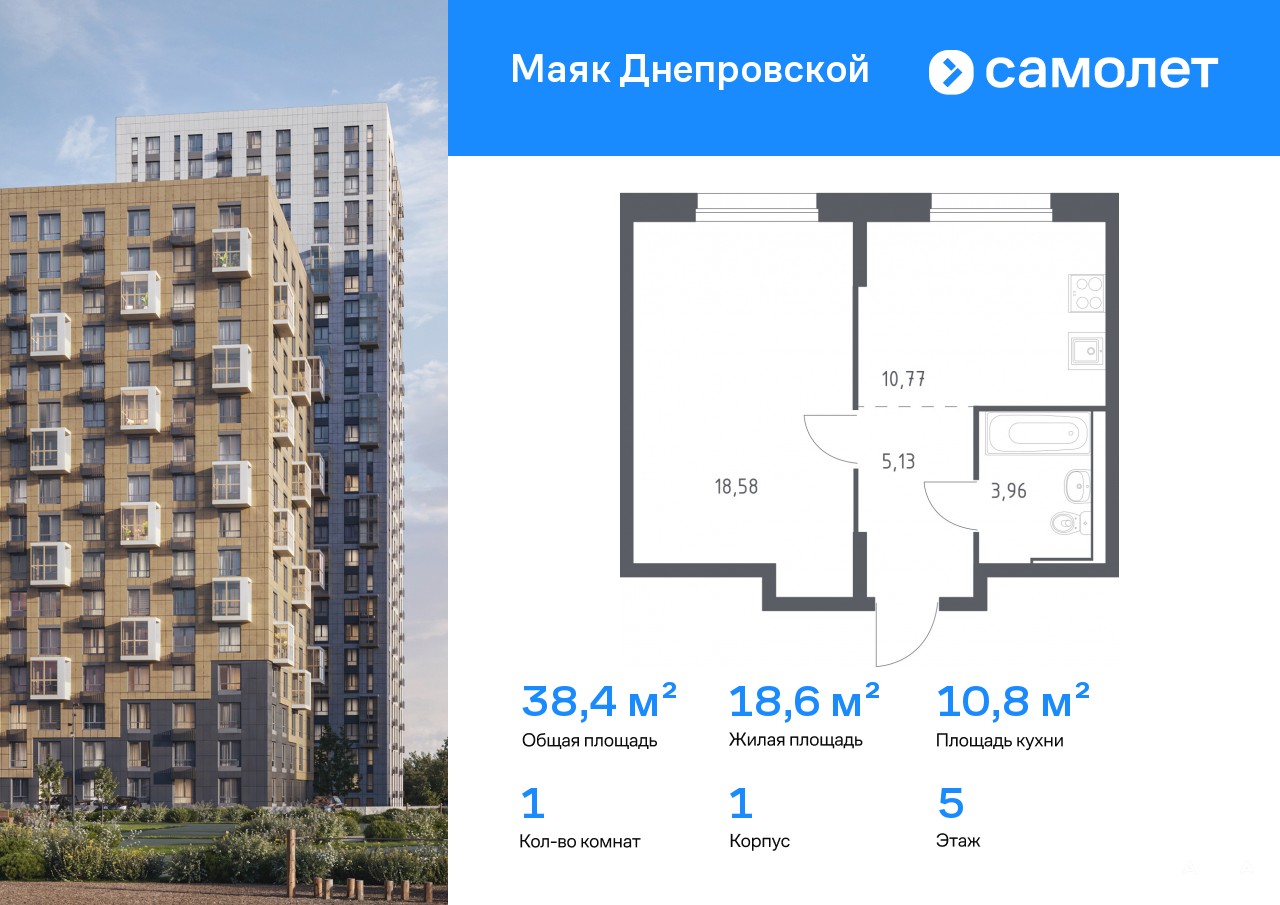 Строим кварталы для жизни с заботой о будущем. Предлагается 1-комнатная квартира комфорт-класса 38, 44 кв.м в корпусе 1 на 5 этаже, в ЖК «Маяк Днепровской»