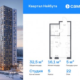 Строим кварталы для жизни с заботой о будущем. Предлагается квартира студия комфорт-класса 32, 52 кв.м в корпусе 5 на 22 этаже, в ЖК «Квартал Нейбута» Квартира с чистовой отделкой. Доступность дополнительных опций уточняйте у застройщика. Приобрести квартиру возможно по...