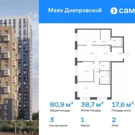 Строим кварталы для жизни с заботой о будущем. Предлагается 3-комнатная квартира комфорт-класса 81, 58 кв.м в корпусе 1 на 6 этаже, в ЖК «Маяк Днепровской» Квартира с чистовой отделкой. Доступность дополнительных опций уточняйте у застройщика. Приобрести квартиру возможно по...