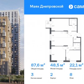 Строим кварталы для жизни с заботой о будущем. Предлагается 3-комнатная квартира комфорт-класса 86, 79 кв.м в корпусе 1 на 8 этаже, в ЖК «Маяк Днепровской» Квартира с чистовой отделкой. Доступность дополнительных опций уточняйте у застройщика. Приобрести квартиру возможно по...