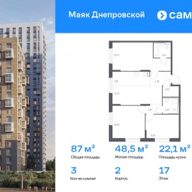 Строим кварталы для жизни с заботой о будущем. Предлагается 3-комнатная квартира комфорт-класса 86, 97 кв.м в корпусе 2 на 17 этаже, в ЖК «Маяк Днепровской» Квартира с предчистовой отделкой. Доступность дополнительных опций уточняйте у застройщика. Приобрести квартиру...