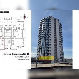 Продается 1-комн. квартира, площадью 77.5 кв.м. Жилая площадь 54.25 м2, ремонта нет, комнаты смежные. Раздельных санузлов - 1, лоджий - 1. Квартира располагается на 6 этаже 22-этажного кирпичного дома.