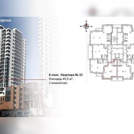 Продается 1-комн. квартира, площадью 45.5 кв.м. Жилая площадь 31.85 м2, ремонта нет, комнаты смежные, совмещенных санузлов - 1, лоджий - 1. Квартира располагается на 8 этаже 22-этажного кирпичного дома.