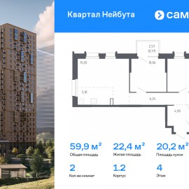Строим кварталы для жизни с заботой о будущем. Предлагается 2-комнатная квартира комфорт-класса 59, 16 кв.м в корпусе 1.1 на 22 этаже, в ЖК «Квартал Нейбута» Квартира с чистовой отделкой. Доступность дополнительных опций уточняйте у застройщика. Приобрести квартиру возможно по...