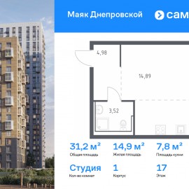 Строим кварталы для жизни с заботой о будущем. Предлагается квартира студия комфорт-класса 31, 22 кв.м в корпусе 1 на 17 этаже, в ЖК «Маяк Днепровской» Квартира с предчистовой отделкой. Доступность дополнительных опций уточняйте у застройщика. Приобрести квартиру возможно по...