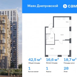 Строим кварталы для жизни с заботой о будущем. Предлагается 1-комнатная квартира комфорт-класса 42, 48 кв.м в корпусе 1 на 28 этаже, в ЖК «Маяк Днепровской» Квартира без отделки. Доступность опции «отделка» и возможность комплектации мебелью и декором уточняйте у...