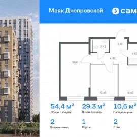 Строим кварталы для жизни с заботой о будущем. Предлагается 2-комнатная квартира комфорт-класса 54, 36 кв.м в корпусе 1 на 2 этаже, в ЖК «Маяк Днепровской» Квартира с чистовой отделкой. Доступность дополнительных опций уточняйте у застройщика. Приобрести квартиру возможно по...