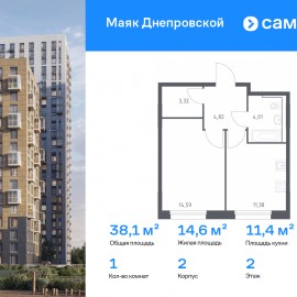 Строим кварталы для жизни с заботой о будущем. Предлагается 1-комнатная квартира комфорт-класса 38, 44 кв.м в корпусе 1 на 21 этаже, в ЖК «Маяк Днепровской» Квартира с предчистовой отделкой. Доступность дополнительных опций уточняйте у застройщика. Приобрести квартиру...