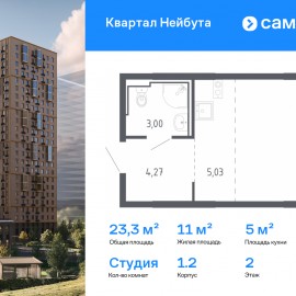 Строим кварталы для жизни с заботой о будущем. Предлагается квартира студия комфорт-класса 23, 27 кв.м в корпусе 1.2 на 2 этаже, в ЖК «Квартал Нейбута» Квартира с чистовой отделкой. Доступность дополнительных опций уточняйте у застройщика. Приобрести квартиру возможно по...