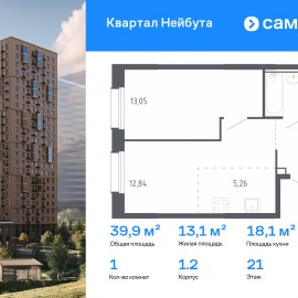 Строим кварталы для жизни с заботой о будущем. Предлагается 1-комнатная квартира комфорт-класса 39, 94 кв.м в корпусе 1.2 на 21 этаже, в ЖК «Квартал Нейбута» Квартира с чистовой отделкой. Доступность дополнительных опций уточняйте у застройщика. Приобрести квартиру возможно по...