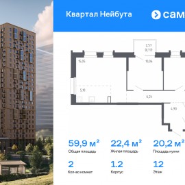 Строим кварталы для жизни с заботой о будущем. Предлагается 2-комнатная квартира комфорт-класса 59, 16 кв.м в корпусе 1.1 на 22 этаже, в ЖК «Квартал Нейбута» Квартира с чистовой отделкой. Доступность дополнительных опций уточняйте у застройщика. Приобрести квартиру возможно по...