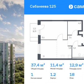 Строим кварталы для жизни с заботой о будущем. Предлагается 1-комнатная квартира комфорт-класса 37, 4 кв.м в корпусе 1.2 на 18 этаже, в ЖК «Сабанеева 125» Квартира без отделки. Доступность опции «отделка» и возможность комплектации мебелью и декором уточняйте у...