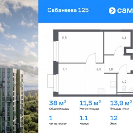 Строим кварталы для жизни с заботой о будущем. Предлагается 1-комнатная квартира комфорт-класса 38 кв.м в корпусе 1.1 на 12 этаже, в ЖК «Сабанеева 125» Квартира без отделки. Доступность опции «отделка» и возможность комплектации мебелью и декором уточняйте у...