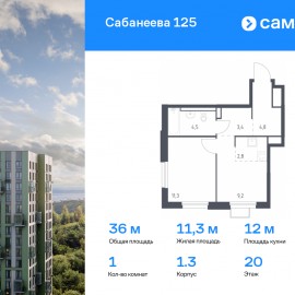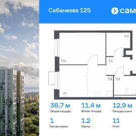 Строим кварталы для жизни с заботой о будущем. Предлагается 1-комнатная квартира комфорт-класса 36, 7 кв.м в корпусе 1.2 на 11 этаже, в ЖК «Сабанеева 125» Квартира без отделки. Доступность опции «отделка» и возможность комплектации мебелью и декором уточняйте у...