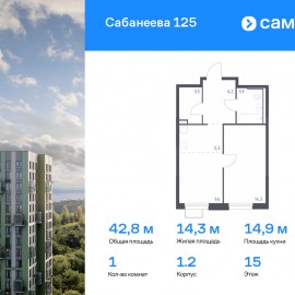 Строим кварталы для жизни с заботой о будущем. Предлагается 1-комнатная квартира комфорт-класса 42, 8 кв.м в корпусе 1.2 на 15 этаже, в ЖК «Сабанеева 125» Квартира без отделки. Доступность опции «отделка» и возможность комплектации мебелью и декором уточняйте у...